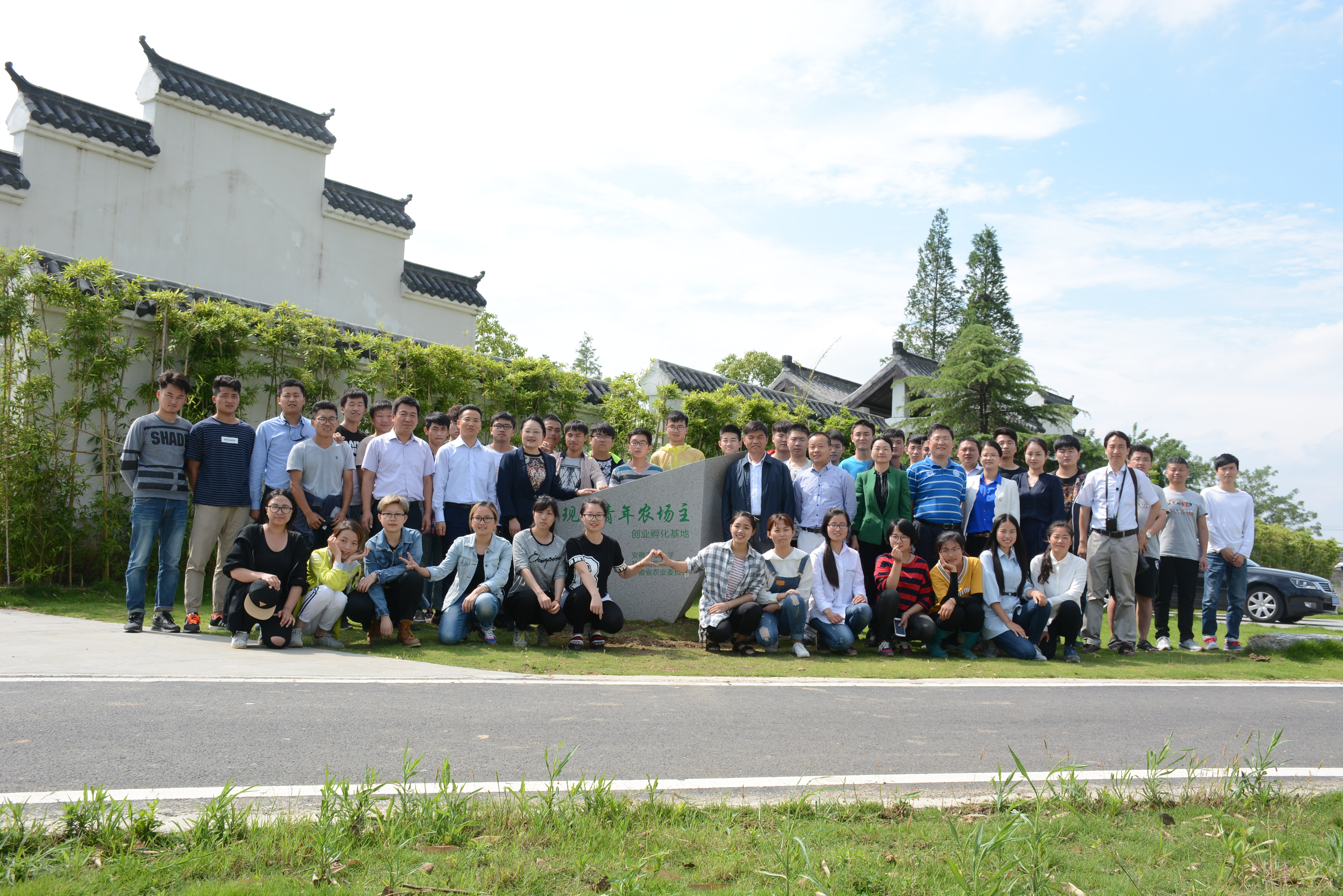 本网讯6月6日下午,共青团安徽省委书记李红一行四人莅临我校现代青年农场主创业孵化基地(巽风湖)慰问创业孵化的学生并与13、14级学生进行了座谈交流。我校副校长马传喜教授、新农村发展研究院肖双喜副教授、巢湖市委副书记许汉生、巢湖市黄麓镇党委书记李池松、镇长杨华松等陪同考察基地并参加座谈会。农学院党委副书记鄢高翔主持座谈会。李红书记首先慰问了在巽风湖基地创业孵化的学生赵九梅、于贝贝,看望了在基地课程实习的14级全体学生并与学生合影留恋。随后,李红书记、马传喜副校长等领导对创业孵化基地进行了全方位考察,赵九梅、于贝贝详细介绍了巽风湖创业孵化基地建设、未来发展等基本情况。