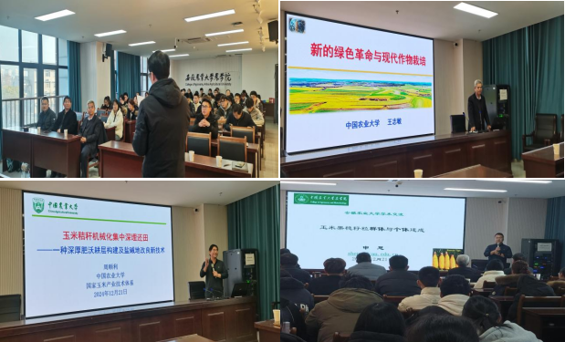 本网讯 “网络进入5G时代,现代栽培方向也已迈入5S时代……” 12月21日上午,农学院邀请了农业农村部小麦专家指导组成员、中国农业大学王志敏教授,作物生理与栽培研究中心主任、中国农业大学周顺利教授,以及中国农业大学农学院副教授申思为农学院师生开展了一场精彩纷呈的“作物栽培课”学术讲座。本次学术报告由农学院副院长宋贺教授和余恩教授主持。