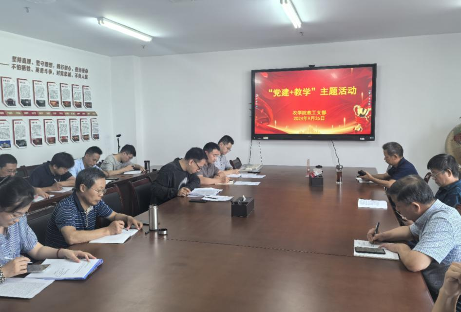 本网讯 9月26日下午,农学院教工第一、第二党支部在朝阳楼206会议室联合开展“党建+教学”主题活动。活动由教工党支部书记陈翔和黎珉共同主持,教工支部全体党员参会。