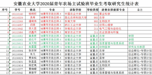 考研录取率接近75%,其中985、211学校6人,分别是中国农业大学、西北农林科技大、东南大学、南京农业大学、浙江工业大学、华南农业大学,其他11人在我校攻读学硕3人,支教团1人,创业孵化+专硕计划7人。