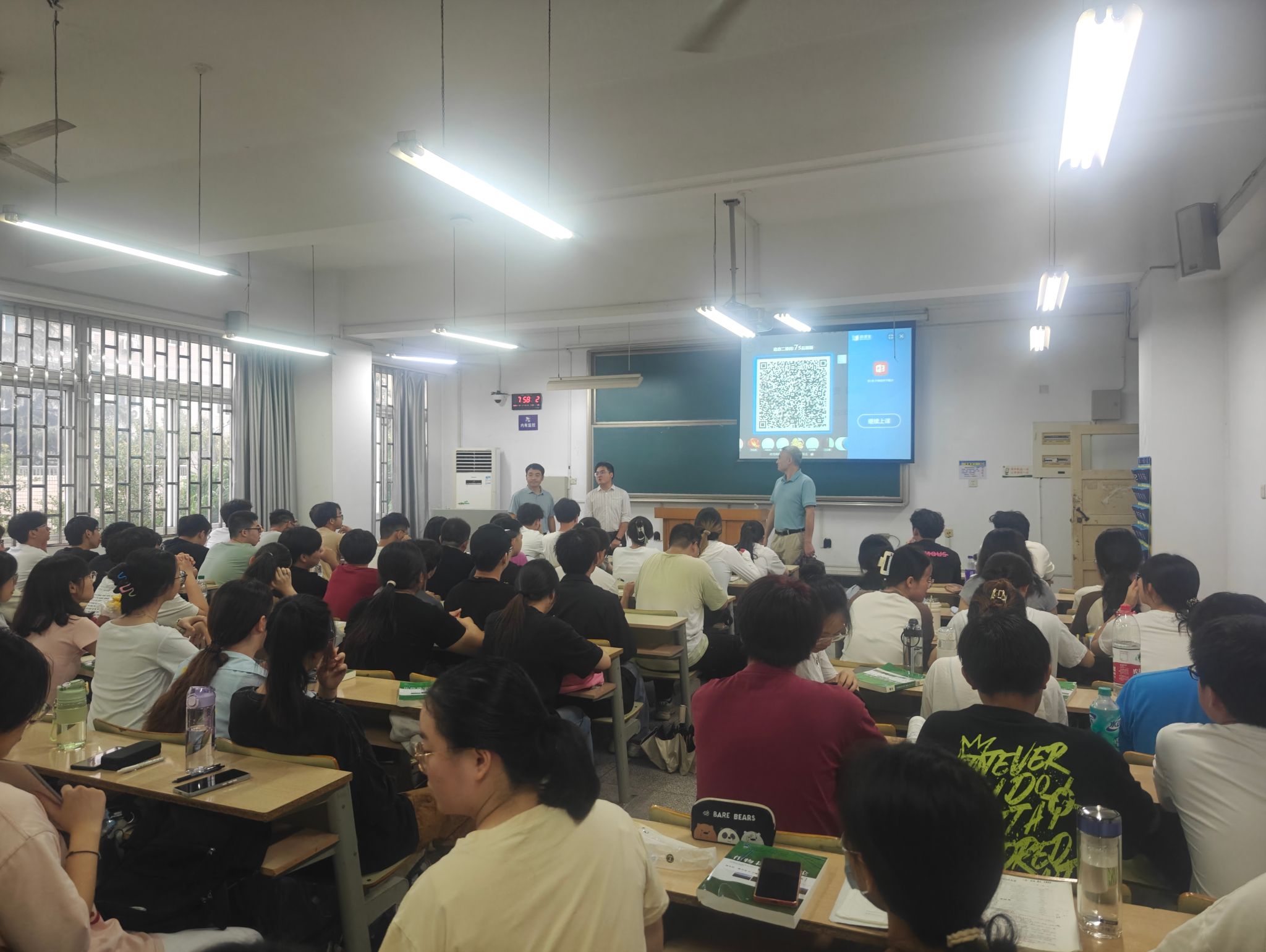 黄婷、胡群文、何海兵、张付贵、姜昊等授课老师均提前半小时到达教室,调试多媒体设备,与到课学生交流课程基本情况。