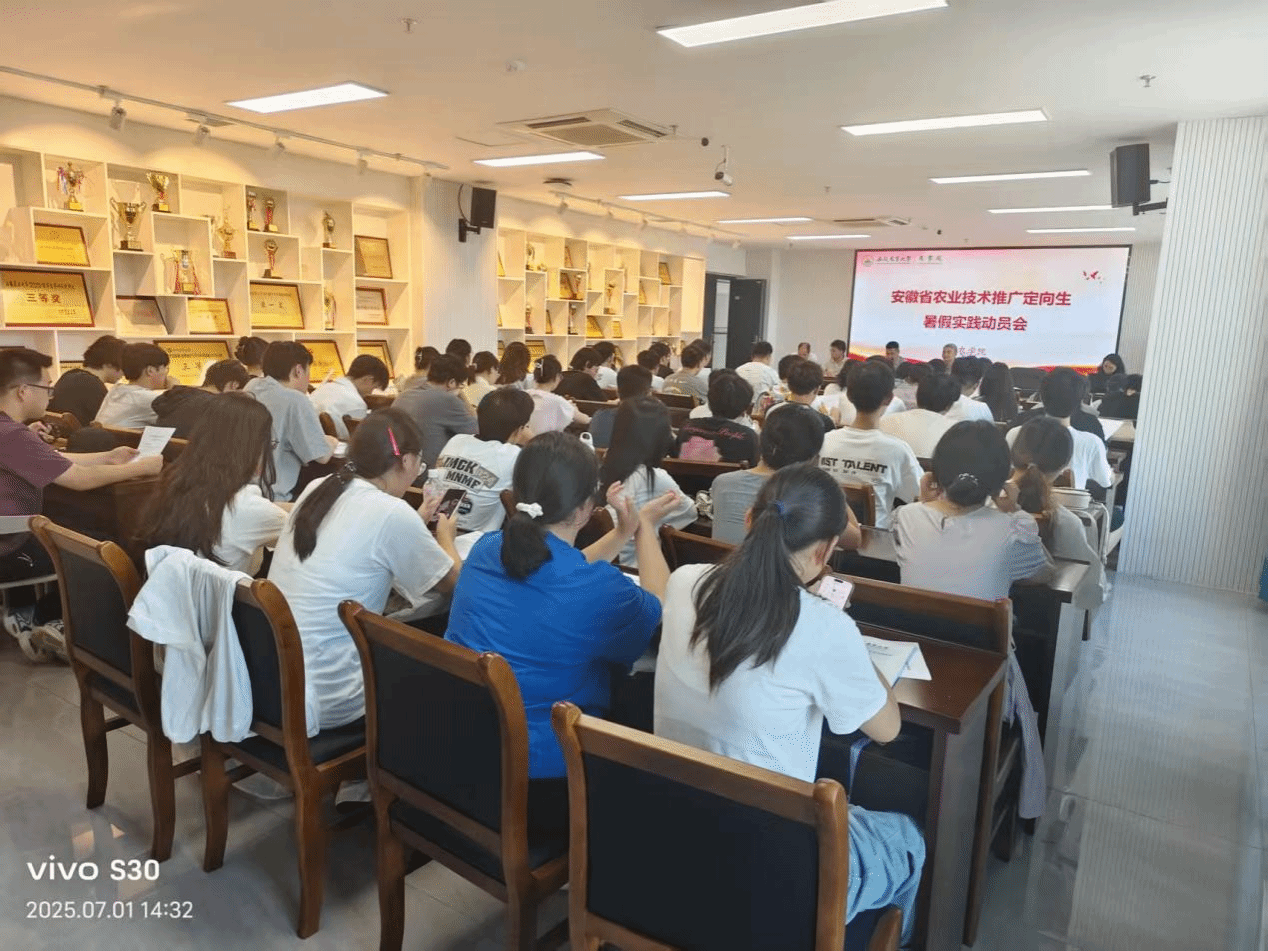 会上,陈翔介绍了2025年农技推广定向生暑期实践的基本安排及注意事项。卢杰详细说明了安徽省农技推广定向生的招生背景、人才培养目标,并对实践期间的纪律规范做出了明确要求。