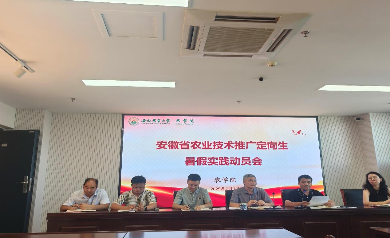 本网讯 7月1日下午,农学院在朝阳楼202会议室召开2023级、2024级安徽省农技推广定向生暑期集中实践动员会,学院党委书记洪志生、农学系主任陈翔、专业教师及辅导员参会,会议由副院长卢杰主持。