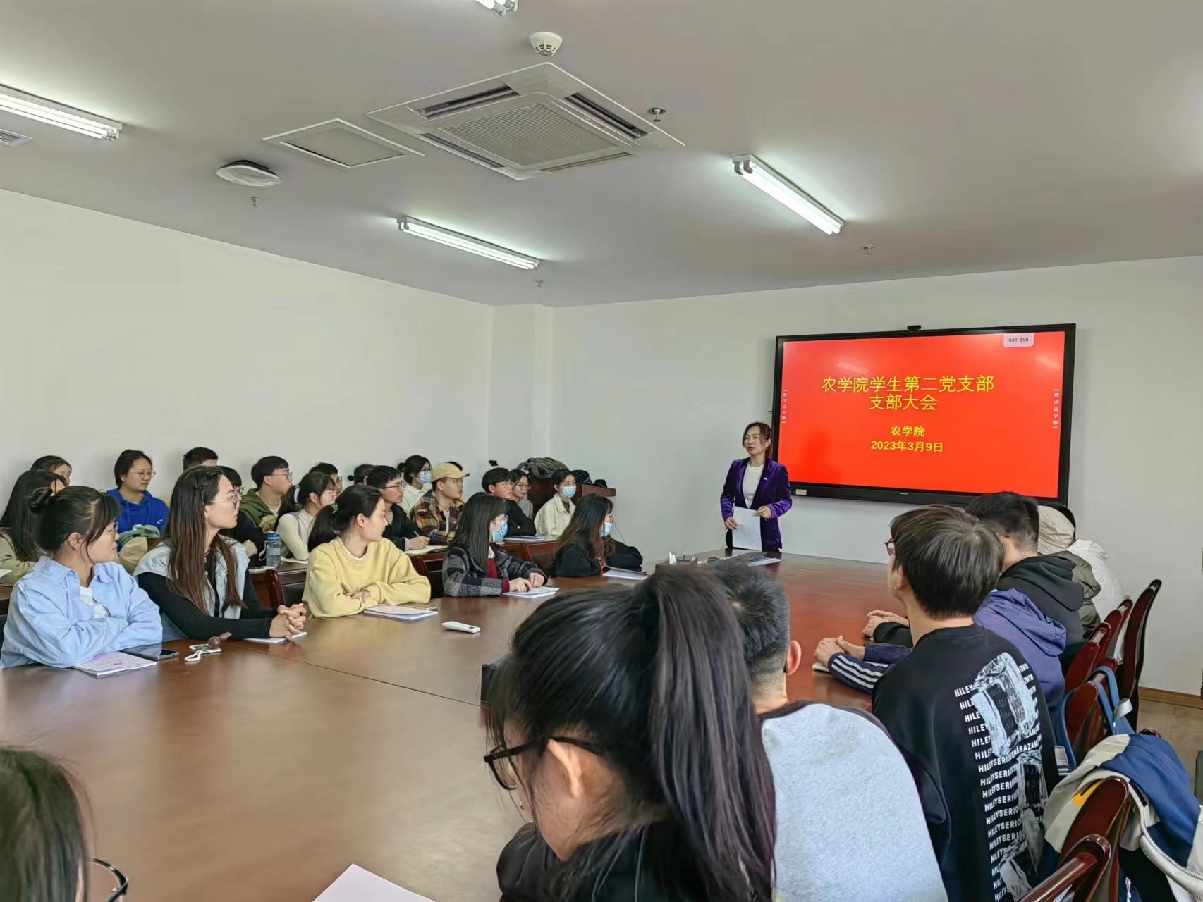 本网讯 3月9日中午,农学院学生第二党支部在朝阳楼206会议室召开支部大会,专题开展组织生活会的理论学习会,会议由支部书记彭琼琼主持,全体党员参加会议。