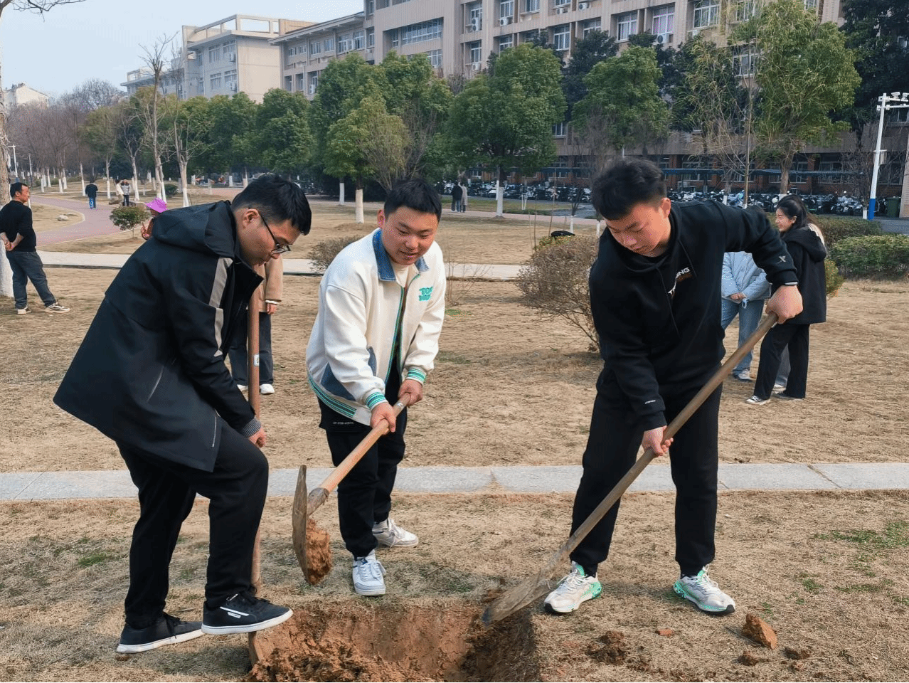 学院校友发扬饮水思源精神,向学校捐赠优质树种,丰富学校树种资源。学院组织团员青年积极配合学校重点工作建设专班,在智慧广场西侧参与绿化种植,同学们挥汗如雨,在温暖的春风里感受着劳动卫生的快乐。亲身参与校园环境建设,也让同学们更深刻的体会到校园环境革命的重要意义。