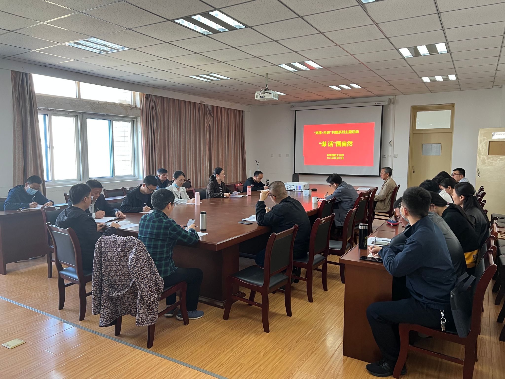 本网讯 10月13日,为进一步强化党建引领在教学科研中的作用,本着“我为师生办实事”是党史学习教育的落脚点,推动党建成果转化为服务发展的强大动力,农学院教工第一党支部和第二党支部在十教518联合开展了“党建+科研”共建主题活动——“谋.话”国自然,农学院教工支部党员、青年教师及博士后参加了本次活动。