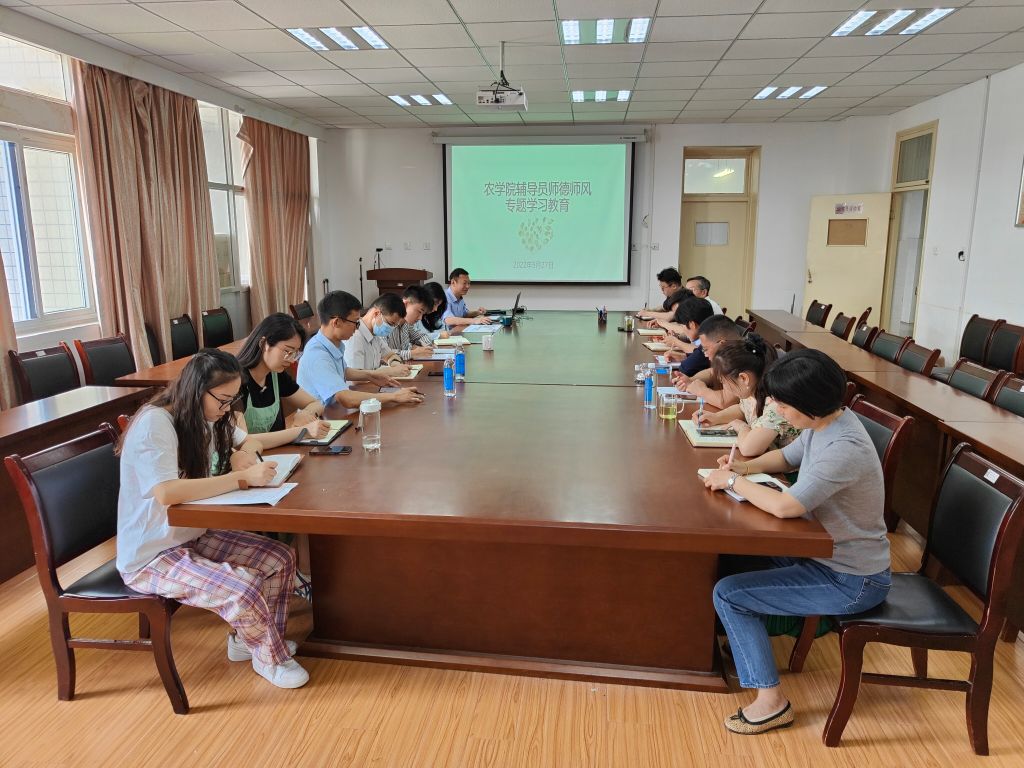 本网讯 5月27日下午,农学院在十教518会议室开展辅导员师德师风专题学习教育。会议由院党委副书记吕大鹏主持,院党委书记管志权、学院专兼职辅导员参加会议。