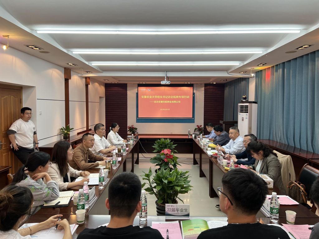 本网讯 5月19日,校党委常委、纪委书记陈文兵带队走访安徽华皖种业有限公司,校招生就业处、农学院相关领导、4名2022届毕业生参加活动。安徽华皖种业有限公司党支部书记赵富中、总经理胡建合接待了学校一行,华皖种业部分校友参加座谈交流。