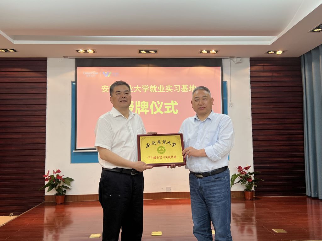 会上,陈文兵与华皖种业党支部书记赵富中共同为“安徽农业大学学生就业实习实践基地”揭牌。