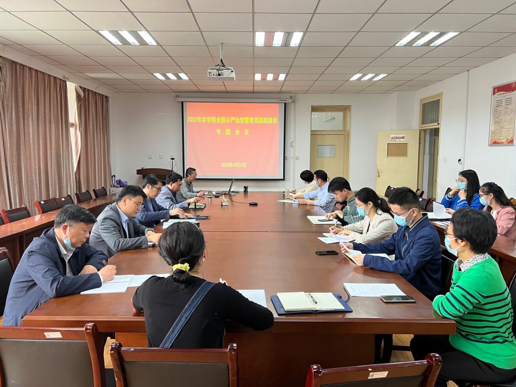 本网讯 4月20日下午,农学院在十教518会议室召开全面从严治党暨党风廉政建设专题会。学院党政领导、党委委员、各党支部书记、科级干部等相关人员参加会议。会议由院党委书记管志权主持。