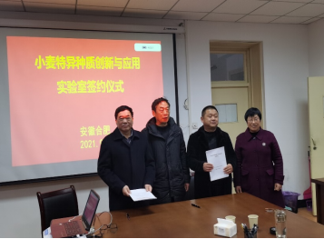 濉溪县科技局王俊武副局长,淮北双收种业有限责任公司法人黄岩、安徽永民种业有限责任公司法人赵德军、安徽省小麦产业技术体系首席专家李金才教授、安徽省油料产业技术体系首席专家周可金教授、副首席专家王晓波教授等参加实验室共建活动,并共同见证签约仪式。