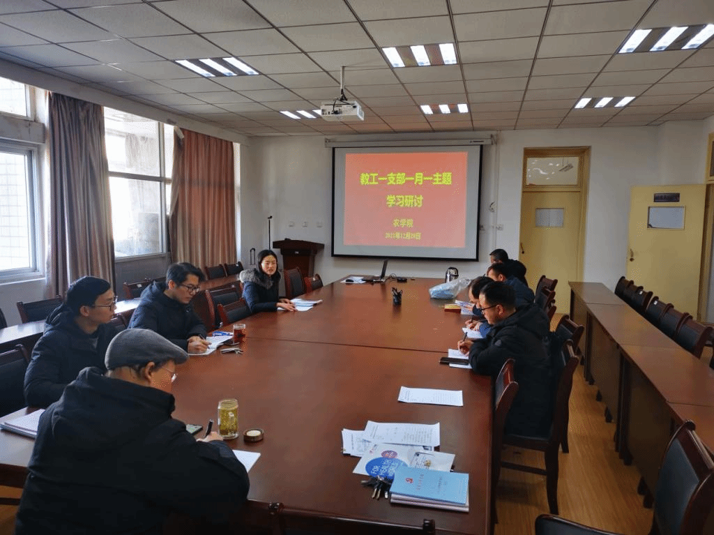 本网讯 12月28日下午,农学院教工第一党支部在十教518开展“一月一主题”集中学习研讨,支部全体党员参加,活动由支部书记余燕主持。