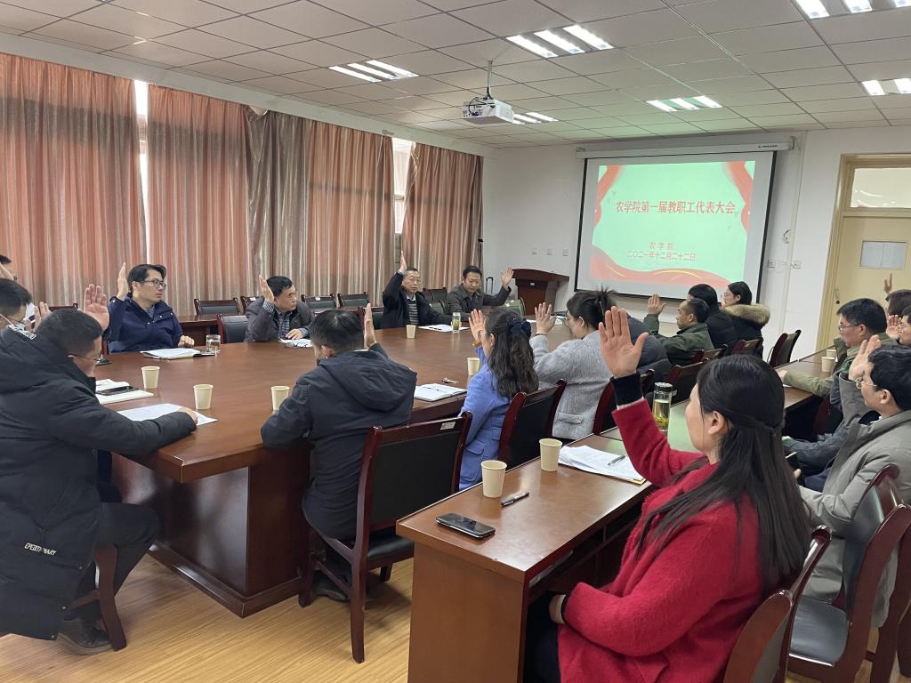 12月22日下午,农学院在十教518会议室召开第一届教职工代表大会。校党委常委、党委教师工作部、人事处、人才办蔡德军处长到会指导并致辞。会议由院党委副书记、纪委书记、副院长吕大鹏主持。