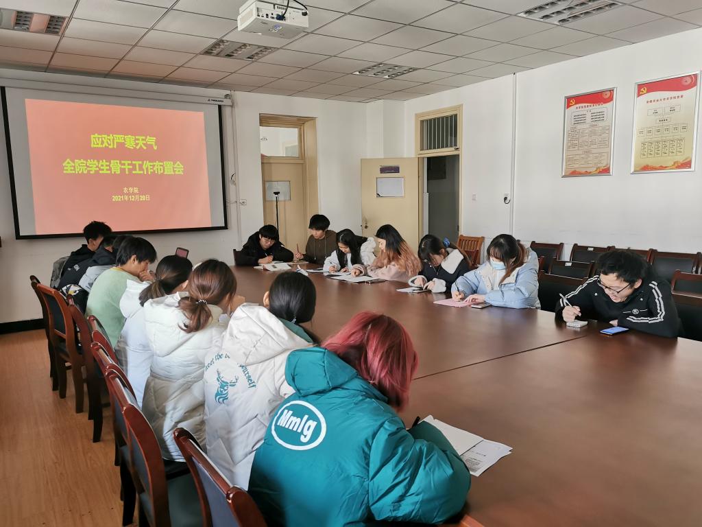 本网讯 12月8日下午,学院在十教518召开应对严寒天气工作会议。学院学生会各部门部长均参加了此次会议。会议由董群主持。