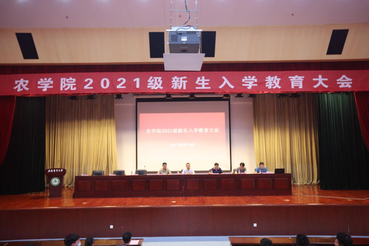 本网讯9月11日下午,农学院2021级新生开学典礼暨入学教育在图书馆一号报告厅隆重举行,农学院党委书记管志权,院长李金才,院党委副书记、纪委书记、副院长吕大鹏,副院长王晓波、副院长宋贺,各系部主任,办公室人员、新生辅导员、2021级本科、专升本、研究生全体480名学生参加本次典礼。大会由吕大鹏主持。
