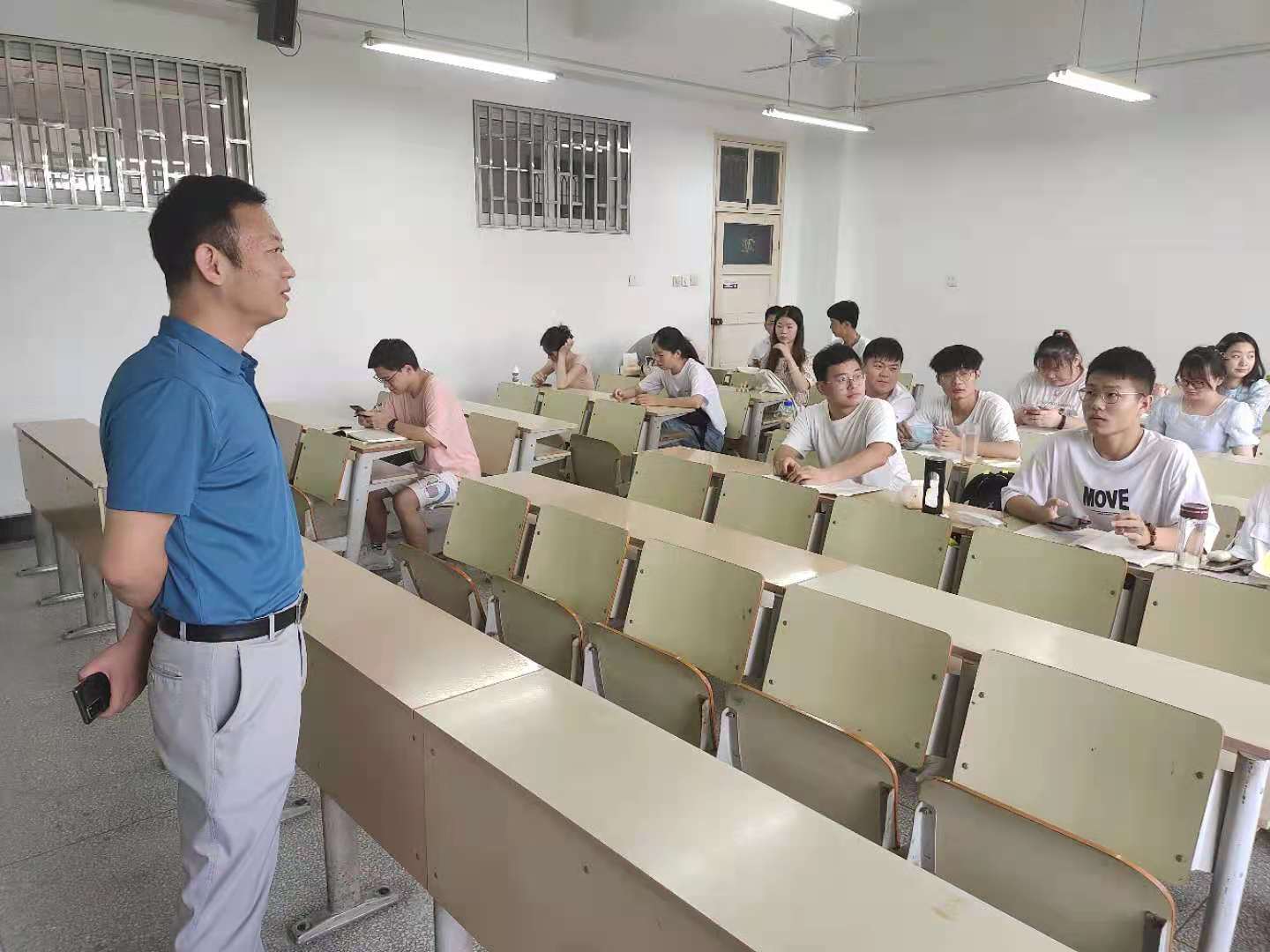 学院领导与老师同学们广泛交流,希望同学们按照学校学院防疫要求戴好口罩保持必要距离,询问同学们课程安排和教材领取等情况,希望同学们多和授课老师多沟通,未来在现代农业领域发挥自己的专业特长。学院领导也对胡群文、朱英华、杨烈、陈翔、高慧慧等第一课老师表示感谢,感谢老师们精心准备第一课,早早到教室做好第一课准备工作,使得开学教学工作重要一环平稳顺利。