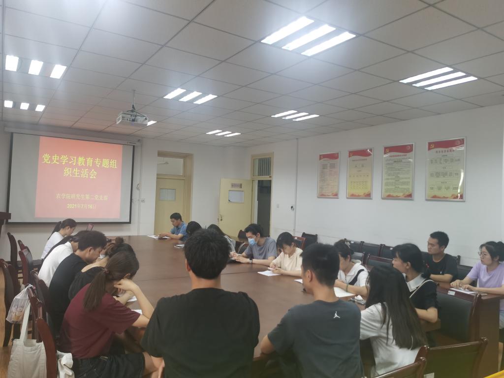 本网讯 2021年7月16日,农学院研究生第二党支部在十教518开展“学习中国共产党成立100周年讲话主题党日活动”与“党史学习教育专题组织生活会”。院党委委员、作物育种与种子科学系主任卢杰老师出席会议。研究生第二党支部副书记蔡洪梅主持会议。