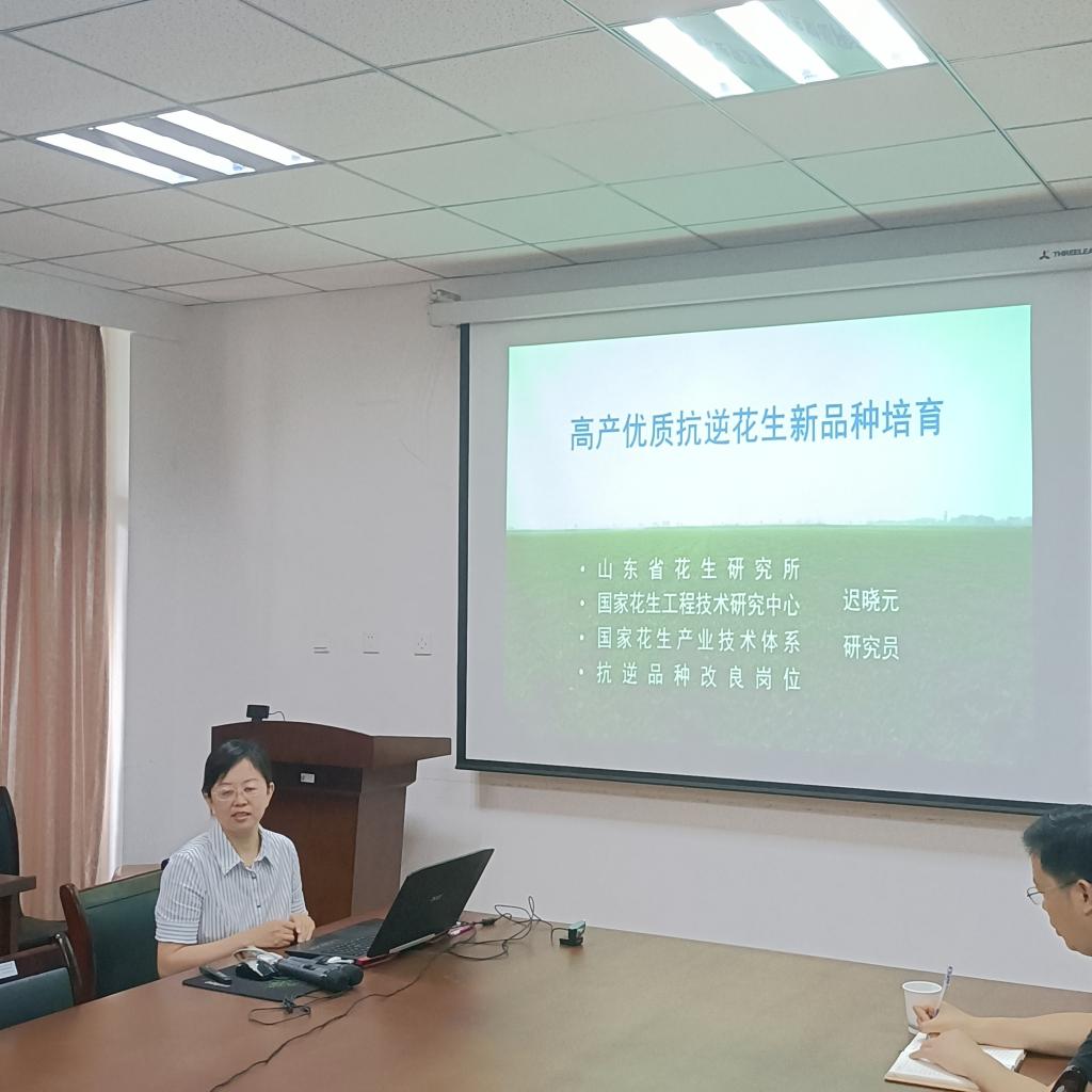 迟晓元研究员作了题为《高产优质抗逆花生新品种培育》的学术报告,主要从“花生产量和品质代谢相关机制研究、种质创新与品种培育”、“花生非生物和生物胁迫相关机制研究、种质创新与品种培育”和“花生连作减产(重茬)与土壤微生物群落结构的相互关系研究”等方面进行了精彩的报告。
