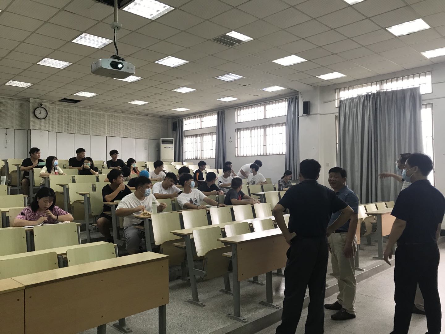 开学第一课,农学院领导班子早上7:40在博学楼集合,分别到农学院专业课教室博学楼304、312、532等教室查看师生上课情况。为做好万全准备,农学院师生提前15分钟左右到教室调试设备,准备各种上课事项,老师们按学校要求分班教学,同学们则保持适当距离。老师为线上线下混合式教学做了精心规划和布置,同学们学习状态良好。开学第一课两个毕业班同学到课率高,授课教室张文明、胡群文、杨烈等老师准备充分。农学院院长李金才就专业课进程和教材等情况进行了交流询问,书记管志权要求同学们在疫情常态化情况下,保持学习劲头,配合老师做好学习规划。农学院副院长常成、武立权也到教室查看。