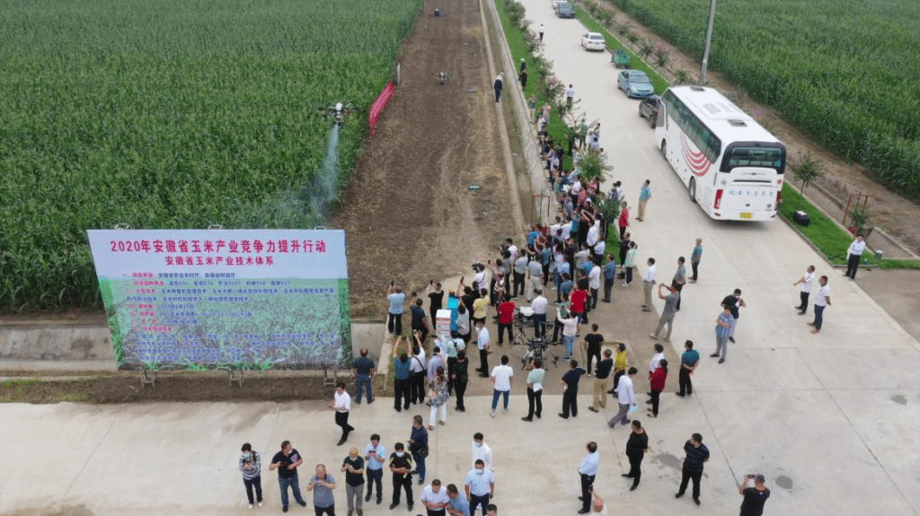本次会议由安徽省农业农村厅邀请北京市农林科学院、山东省农业科学院、河南农业大学等有关单位专家组成现场考评专家组,对安徽农业大学负责实施的“安徽省玉米产业竞争力提升科技行动”项目进行了现场考评。考评组考察了大田玉米固定管网式智能水肥一体化技术、玉米中后期病虫害智能化热雾飞防技术田间示范现场。