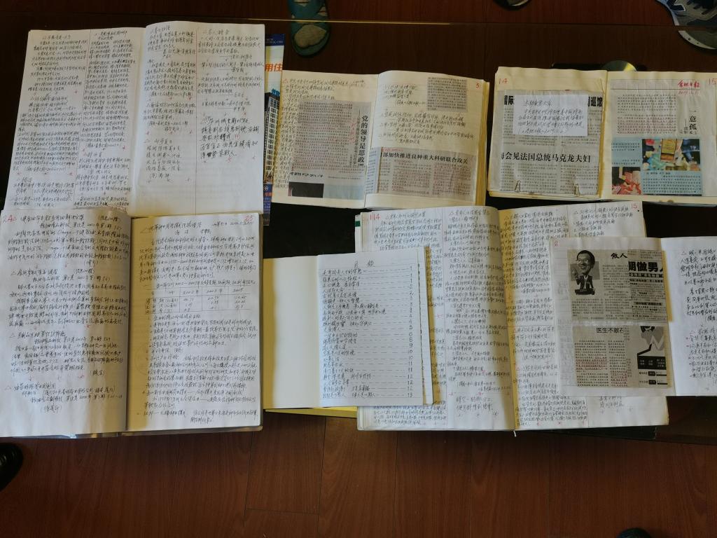 在交流中谈到党的生日时,宋老师拿出他的学习笔记,一本本的笔记剪报震撼了大家。在他的学习笔记里,以学党章、学讲话为主,学习记录涵盖了党的十八大以来习近平总书记系列重要讲话精神、党的十九大报告、党的十九届四中全会精神等内容。简报和摘抄中宋老特别关注粮食安全、精准扶贫和乡村振兴等国家发展中的重大战略问题。由于宋老师耳朵听力减退厉害,于是他订阅了一份报纸、一份杂志,每天坚持学习摘录,及时了解国家政策,对重要文件剪报粘贴,并附上学习感悟。