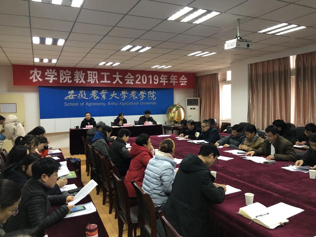本网讯 12月25日下午3点,我院于十教518会议室召开农学院教职工大会2019年年会,学院领导班子和全体教职工参加会议,会议由学院党委副书记、副院长鄢高翔主持。