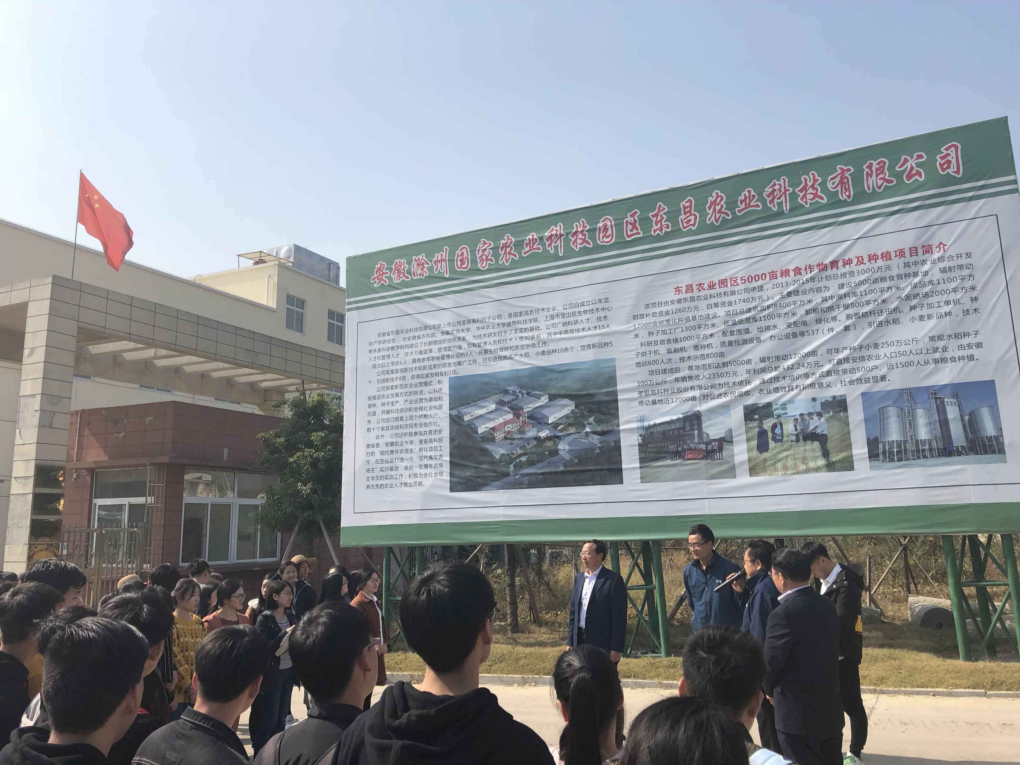本讯网 10月30日,在董召荣教授和车钊老师的带领下,农学院2015级农学专业72名学生前往定远县安徽农业大学江淮分水岭综合试验站,范岗乡杨湾村的稻虾共养综合生产的试验示范基地和安徽东昌农业科技有限公司,开展《耕作学》教学实习。