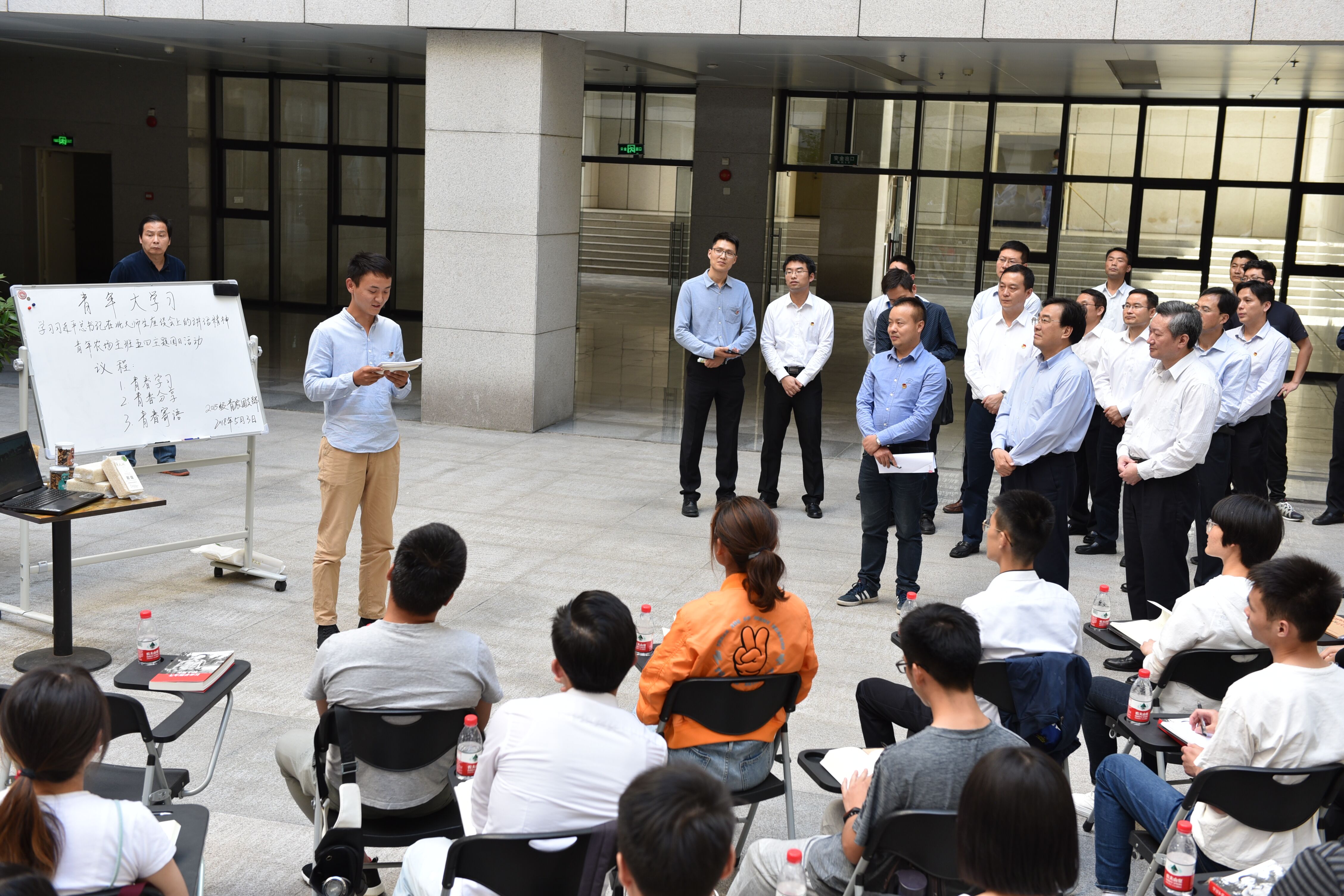 本网讯:5月3日下午,2015级青年农场主试验班在图书馆开展“青年大学习——学习习近平总书记在北大师生座谈会上的讲话精神”青年农场主班五四主题团日活动。安徽省委副书记信长星莅临指导,共青团安徽省委书记孔涛、校党委书记江春、校纪委书记裴树东陪同指导主题团日活动。