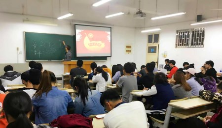 会议开始前,全体成员跟着伴奏唱起嘹亮的中国共产主义青年团团歌《光荣啊!中国共青团》。接下来,仇飞首先就过去一个月的青马班、业余团校培训与学习情况进行了总结,并公布了结业学员名单,希望学员们继续努力,争取早日加入党组织。优秀学员代表丁一峰进行了发言,感谢学校和学院提供这样的一个提升自我素质的机会,感谢本次业余团校的培训工作,并感谢了为本次培训活动付出辛勤工作的老师、同学。
