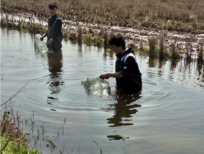 13级青农班的于贝贝和赵九梅带领同学们对创业孵化基地做了全面参观,并与同学们交流她们两人创业孵化的苦乐悲欢。分享了她们实习的心得与感受,风餐露宿,风吹日晒,实践过程中她们所收获的课堂上学不到的知识与能力。给同学安排了种树、割草、投放肥水肽、放龙虾笼等实习工作。在劳动过程中同学们体会到做农业的不易,也为两位师姐点赞,并希望课程结束后到基地开展创业实训和孵化。