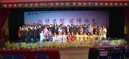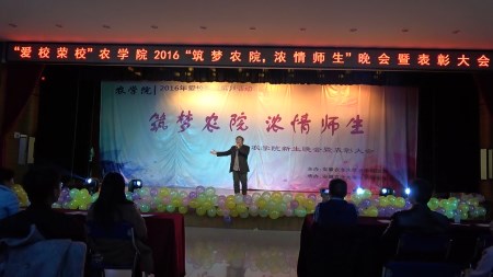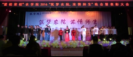 本网迅:12月11日晚,农学院“爱校荣校”系列活动之“筑梦农院,浓情师生”师生文艺汇演暨表彰大会在欣苑四楼大学生活动中心举行。学生处处长彭庆刚、教务处副处长李伟、校团委刑轶老师及学院党政领导应邀出席。学院专兼职辅导员、教师代表与学院全体在校学生参加了活动。