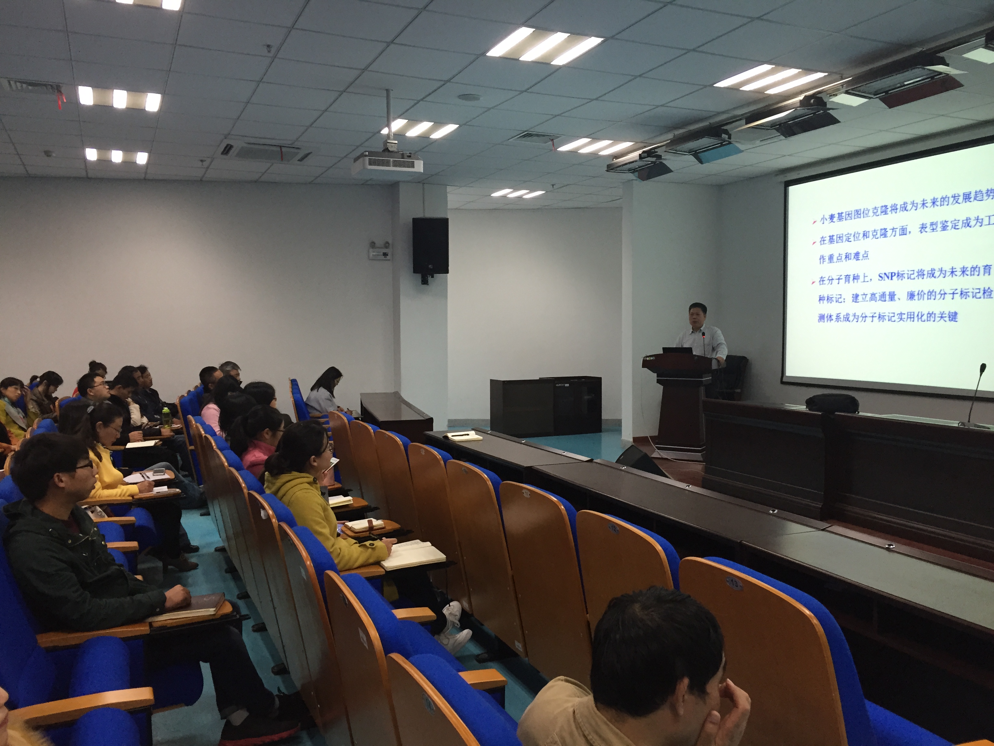 11月14日,应农学院及农业部黄淮南部小麦生物学与遗传育种重点实验室、安徽省粮食作物协同创新中心的联合邀请,农学院讲席教授,中国农业科学院作物所夏先春研究员来校做学术报告和科技指导,并做了“科学实验设计与科研论文撰写”、“国家自然科学基金撰写与申报”等重要学术报告。夏先春研究员主要从事小麦基因组学及抗病分子育种研究,并取得显著成绩,在专业领域内具有较高影响力。农学院常成副院长、吴德祥研究员、司红起教授、张海萍副教授、王成雨老师、武德传老师等以及相关学科研究生参加此次学术交流,报告会由农学院常成副院长主持。
