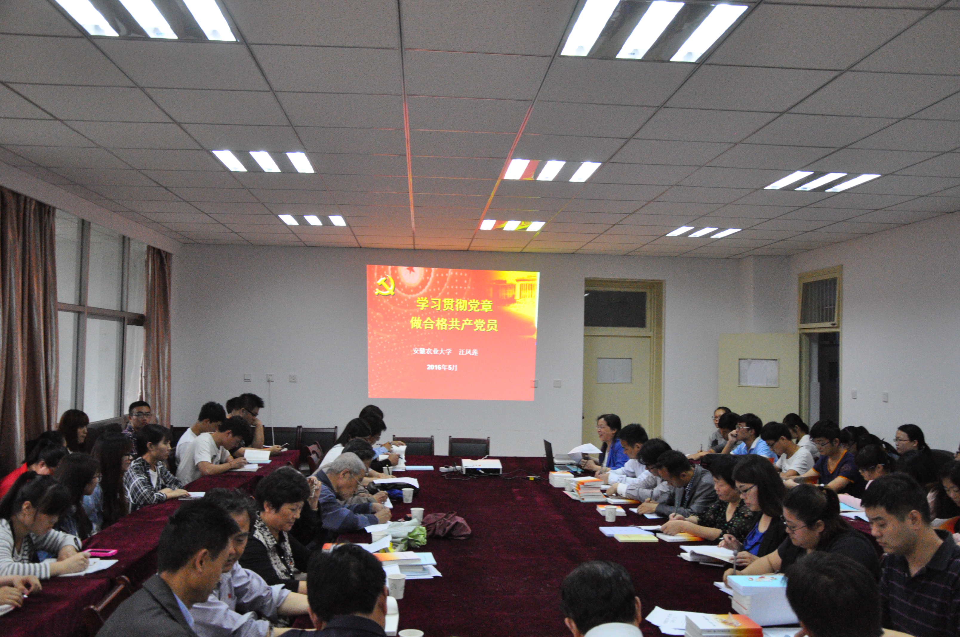 本网讯 5月20日下午,按照学校“两学一做”学习教育部署,为积极推进“党课进基层”活动,农学院党委书记汪凤莲以“学习贯彻党章,做合格共产党员”为题,给学院所有教工和学生党员讲授专题党课。