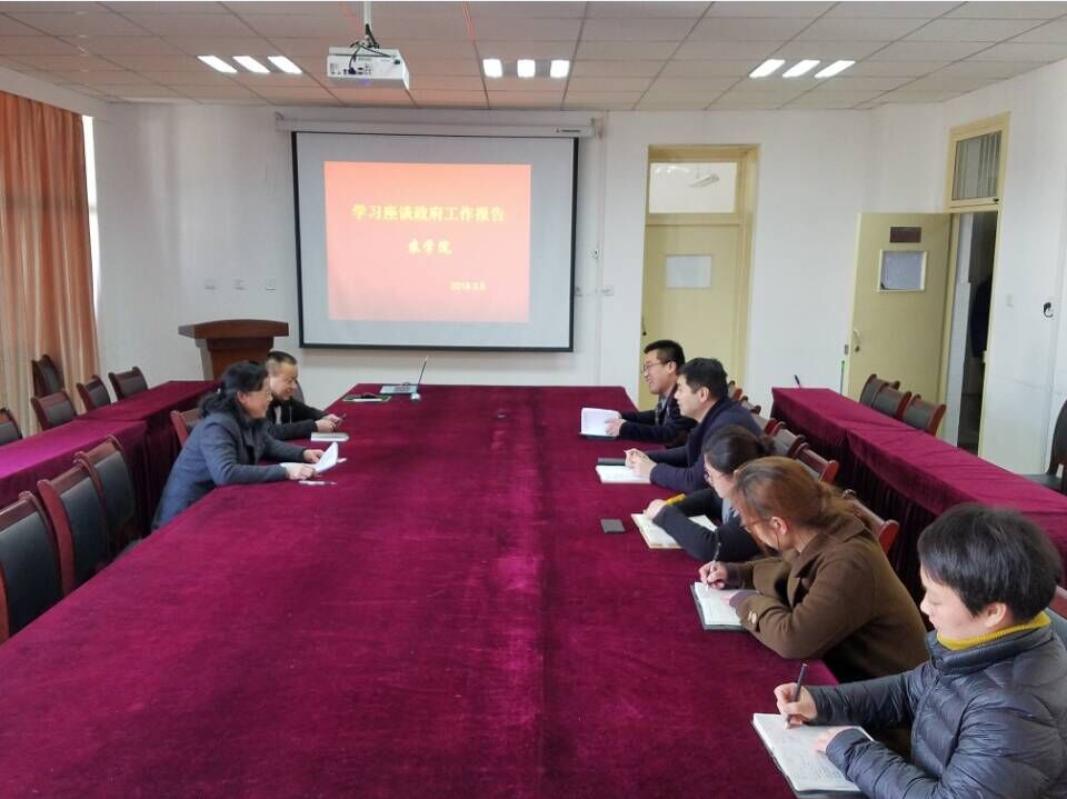 本网讯:3月5日下午,学院在十教518室召开办公室全体人员会议,学习座谈李克强总理政府工作报告。会议由院党委书记汪凤莲主持。