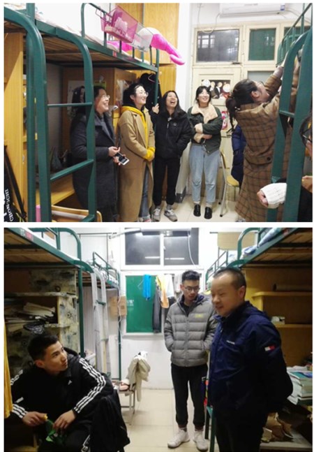 3月4日晚,农学院全体辅导员老师在院党委书记汪凤莲、副书记鄢高翔的带领下到学生宿舍看望学生,也为学生们进行了新春的问候。在走访过程中,老师们与大家进行亲切交流,询问同学们的假期生活、家庭状况,学习情况以及新学期的打算。叮嘱同学们在寝室生活中一定要注意人身财产安全,杜绝使用各类违章电器,养成良好的生活习惯;勉励大家勤奋学习,加强锻炼,努力成为一名有社会责任感、有志向、有才干、有情怀的大学生。