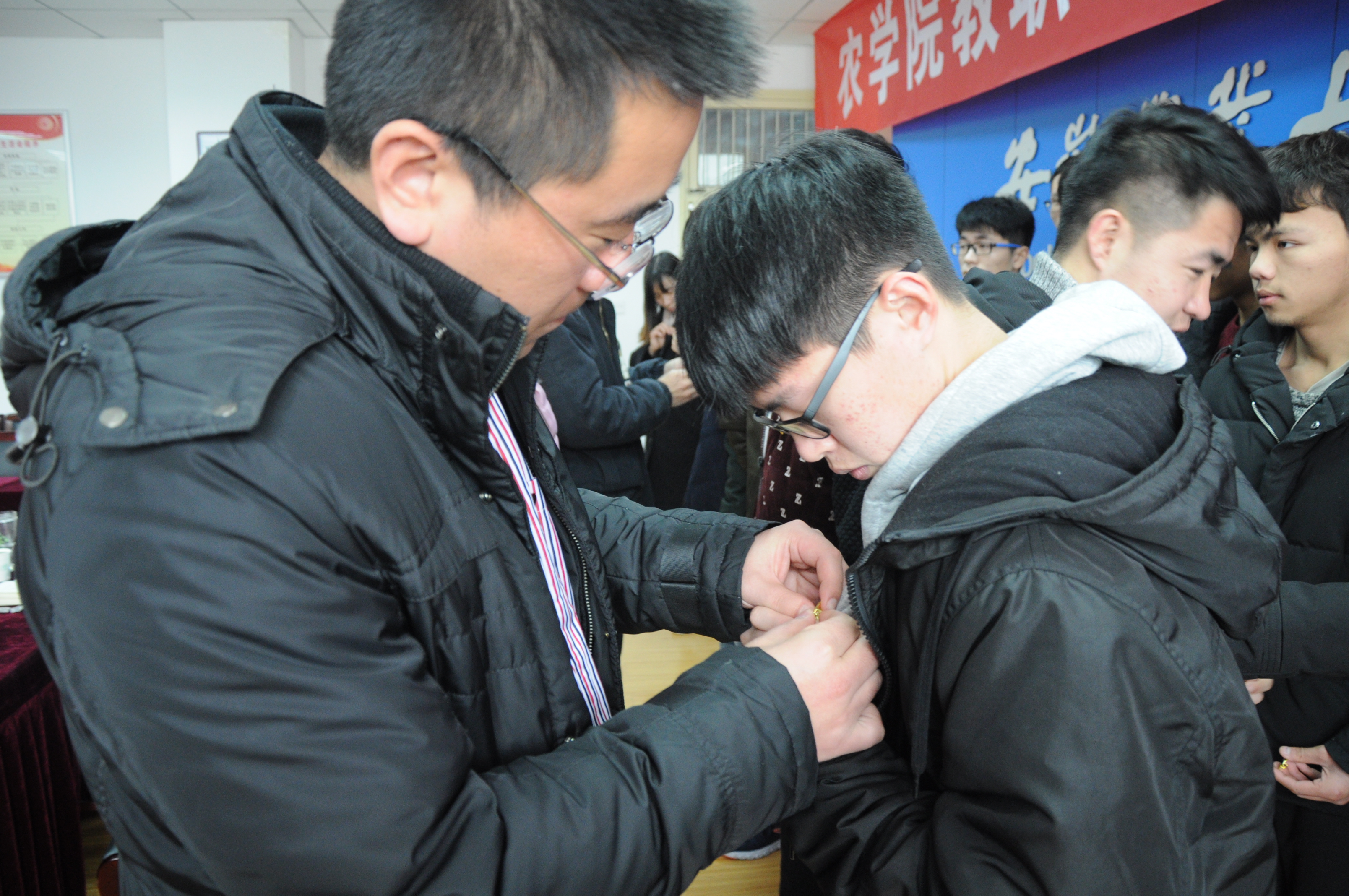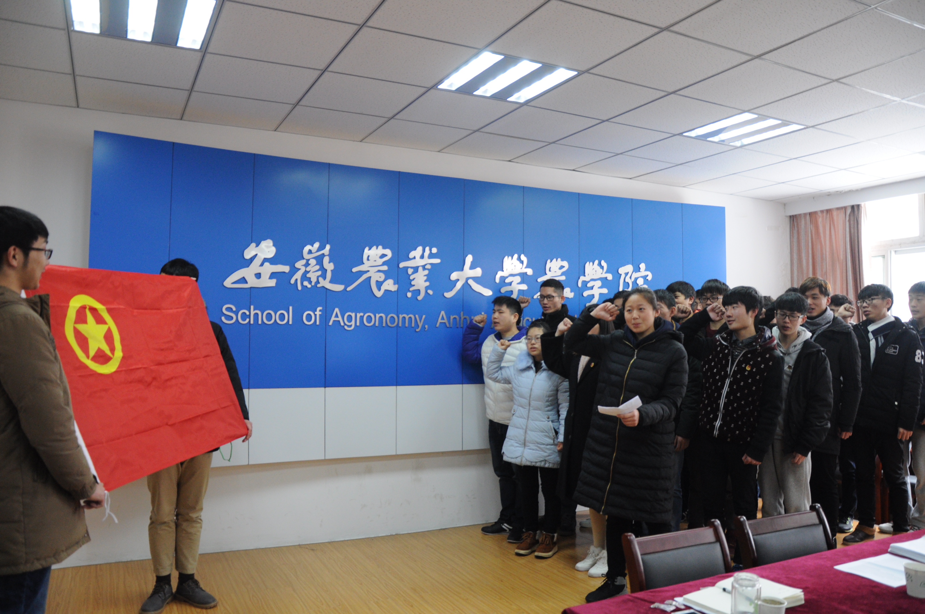 本网讯: 为提升共青团员的自身责任意识,坚定正确的政治思想方向。1月5日中午,农学院在十教518室举行了庄重的新团员入团仪式。院团委书记仇飞、团委老师郑青与全体新团员和老团员代表参加了此次仪式。