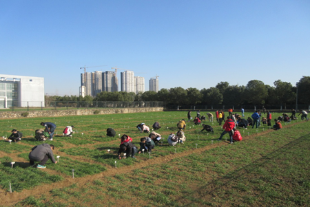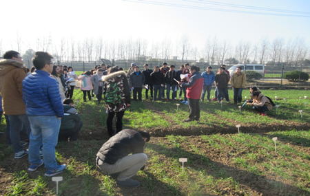 本网讯 2015年12月17日,13级农学专业在常成副院长、卢杰老师的带领下来到合肥市大杨店小麦育种基地开展农学实践2的创新实践实习。期间,常成副院长讲解了小麦越冬前苗情调查的重要性以及小麦茎蘖数、冬春性、叶龄、冻害、次生根数目等重要指标的观察和测定。卢杰老师对同学们的苗情指标的具体观察进行详细指导。苗情调查完成后,常成副院长和卢杰老师带领大家观摩小麦育种基地的各个环节,如原始材料圃、亲本圃、选种圃、品比圃、鉴定圃等重要育种程序。期间常成副院长还讲解了分子育种与常规育种如何结合以及他们在育种中的贡献。