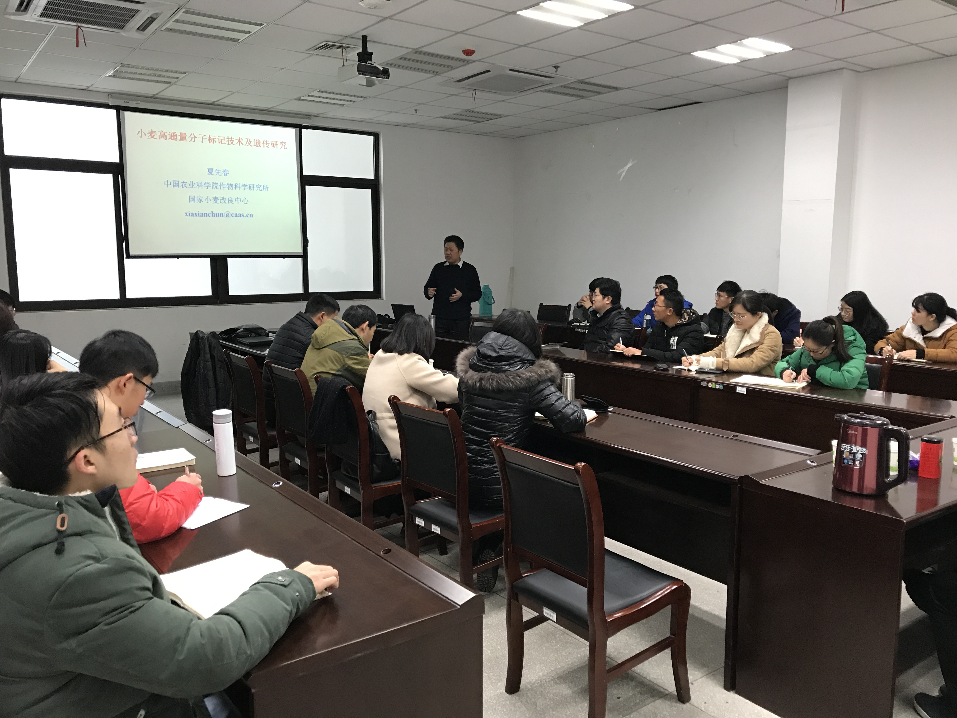 MicrosoftInternetExplorer402DocumentNotSpecified7.8 磅Normal012月29日上午,农业部黄淮南部小麦生物学与遗传育种重点实验室、安徽省粮食作物协同创新中心联合邀请中国农业科学院作物科学研究所夏先春研究员到学院进行学术访问和交流,并做了“小麦功能基因精细定位及新型分子标记开发”等重要学术报告。副院长常成教授、司红起教授、杨烈副教授、郑文寅副教授、张海萍副教授、卢杰博士、陈璨博士等老师以及相关学科研究生参加此次学术交流,报告会由农学院常成副院长主持。期间,与会老师及研究生在新型分子标记鉴定平台、小麦抗逆、产量及品质分子改良、小麦抗赤霉病研究等多个方面与夏先春老师展开深入讨论。会上,就育种材料交流、科研合作、研究生培养等方面也进行进一步沟通,取得较好的交流效果。