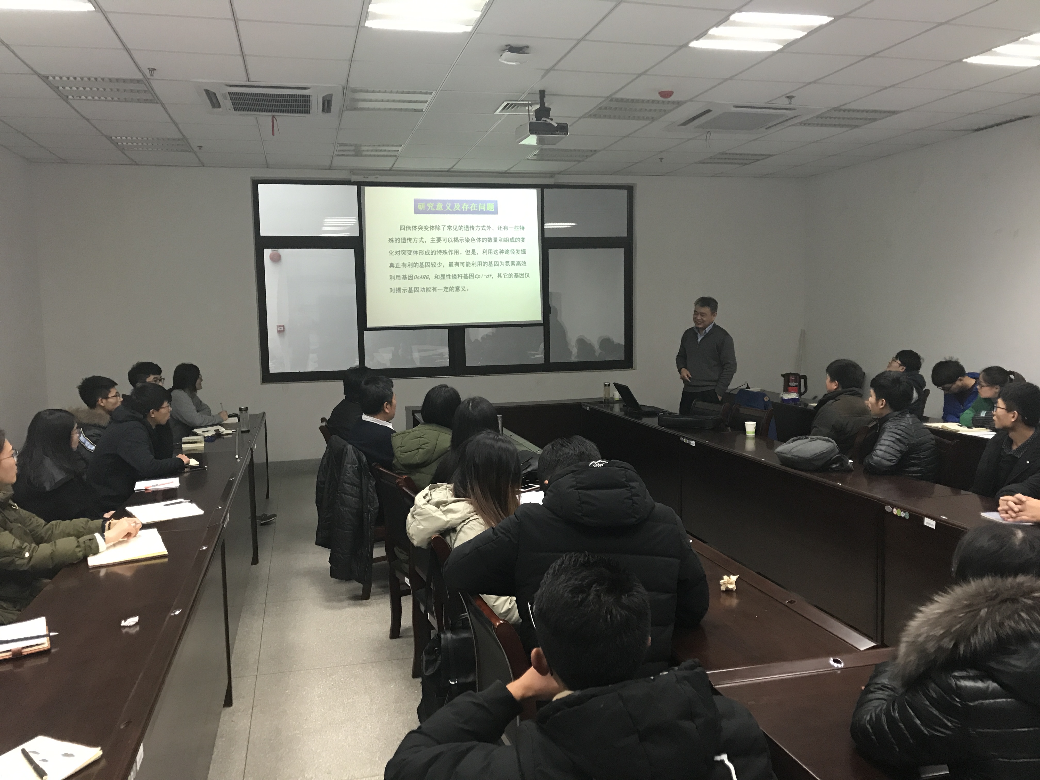 12月28日下午,农业部黄淮南部小麦生物学与遗传育种重点实验室、安徽省粮食作物协同创新中心联合邀请中国农业科学院作物科学研究所程治军研究员到学院进行学术访问和交流,并做了“多倍体水稻功能基因鉴定与挖掘”等重要学术报告。副院长常成教授、张海涛副教授等老师以及相关学科研究生参加此次学术交流,报告会由农学院常成副院长主持。期间,与会老师与同学和程治军研究员在水稻多倍体基因突变、功能基因挖掘及利用等方面进行深入交流,并在育种材料交流、科研合作、研究生培养等方面开展进一步合作。