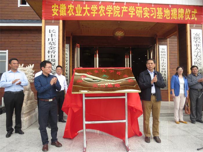 仪式上,合肥市庄墓金桥市级农业示范园、安徽硕然生态有限公司董事长李杰介绍了园区的规划建设及与安农大产学研实践教学基地合作情况。李金才副院长详细介绍了农学院的科研优势和人才培养等情况,强调双方开展合作、增进交流的重要性。并对此次产学研实践教学基地合作项目表示出充分的信心,表示会竭力发挥安农大农学院的科研技术优势,积极助力长丰生态农业发展。同时,双方还就基地建设、成果转化、专家对接和教学实习等方面进行了深层次的探讨,期望合作不断完善和推进,互利互惠、合作共赢。随后,李金才副院长代表学院与李杰董事长签订了校外产学研实践教学基地建设协议书,李绍稳处长与陈伟副县长共同为基地揭牌。(崔文礼 通讯员:李婧)