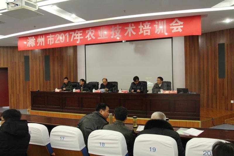 本网讯 由滁州市农业委员会主办,滁州市农科所、滁州学院承办的“滁州市2017年农业技术培训会”于2017年12月20日在滁州市委党校举行,来自全市8个县(市、区)的农技人员及种植大户共200余人参加了培训。会议由滁州市农科所李文晋所长主持,市农委副主任、党组书记时金发作动员讲话。