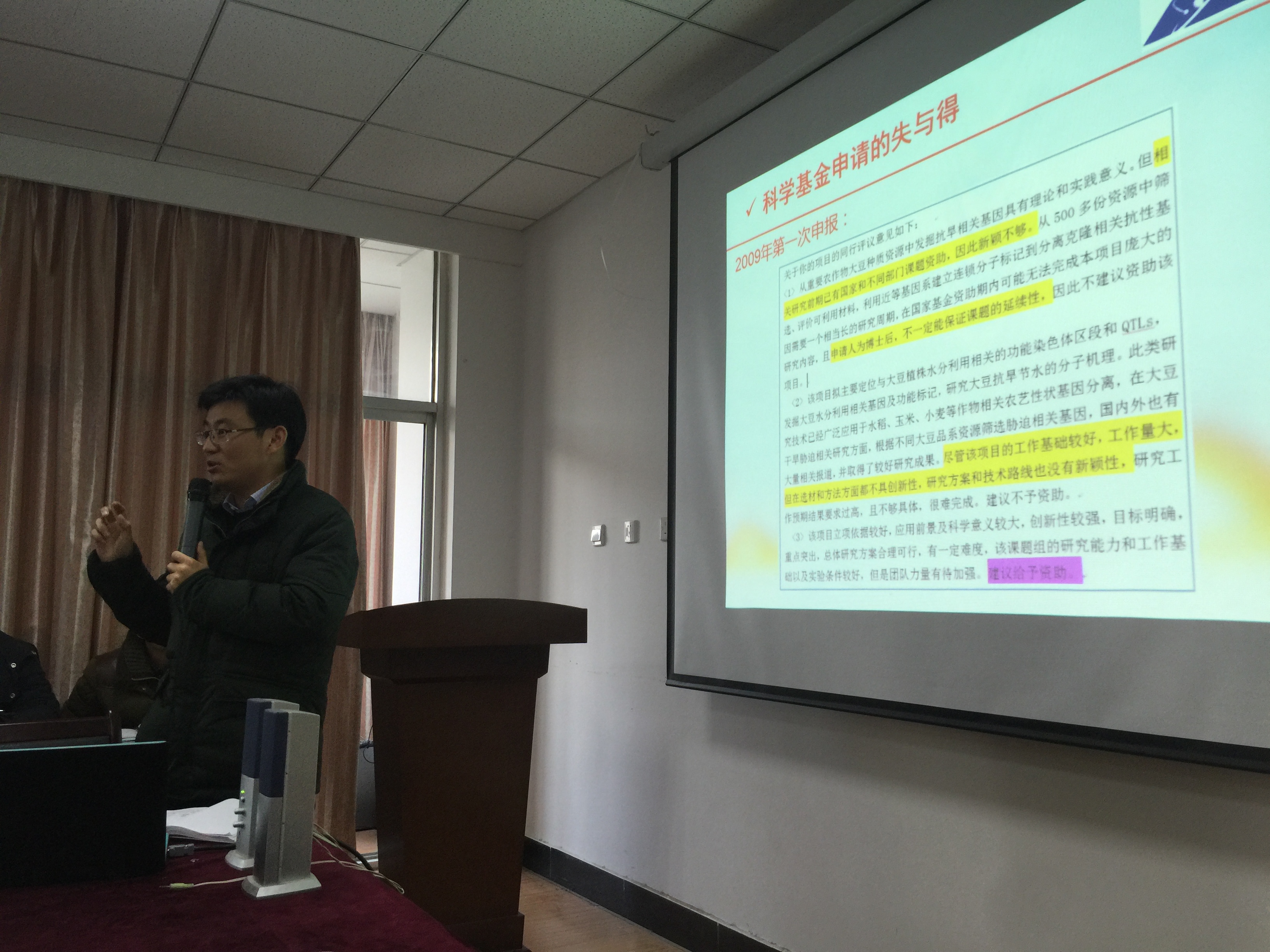 大学应自觉肩负起服务经济社会发展的崇高使命,为实施乡村振兴战略服务,助推全面建成小康社会,为实现中华民族伟大复兴的中国梦贡献智慧和力量。最后王老师结合自身经历分析了申请科学基金的得与失,他分享了申请基金的几点心得:选题新颖性至关重要、良好的项目前期储备(技术、研究基础)必不可少、要广泛征求意见,精益求精、要把握细节。