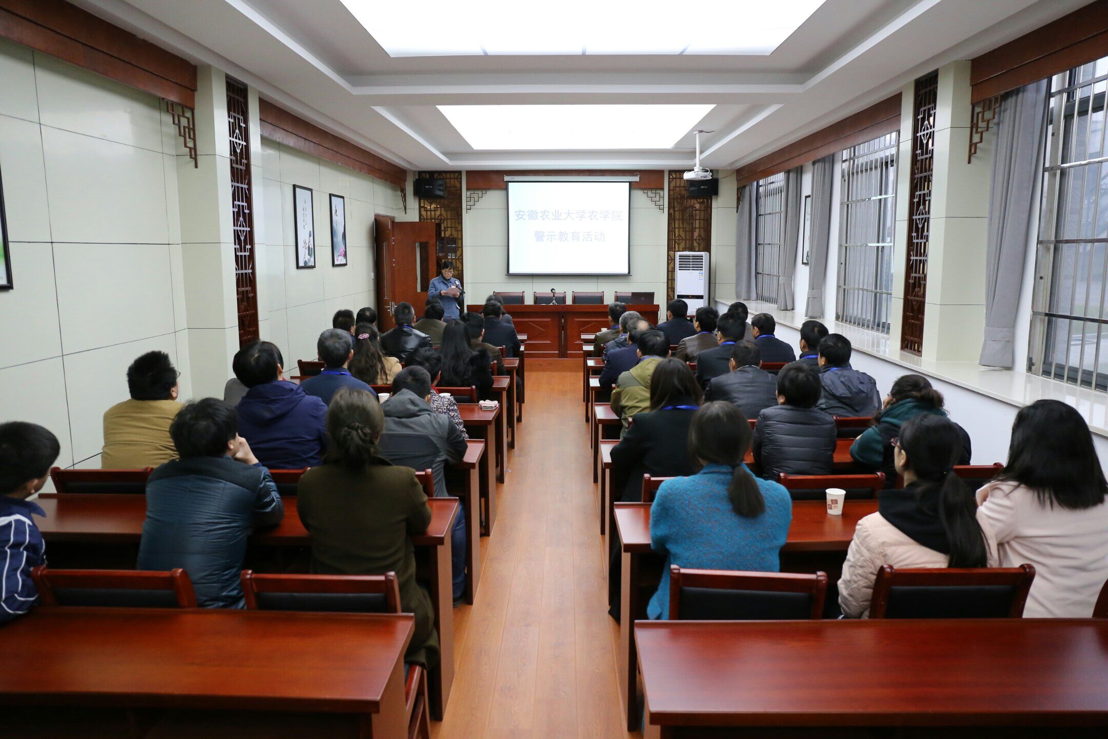 本网讯 为进一步加强学院干部廉洁自律意识,筑牢拒腐防变的思想防线,2017年11月29日下午,农学院组织学院教职工36人赴安徽省女子监狱开展党风廉政建设警示教育活动,学院党委书记汪凤莲、院长李金才、党委副书记鄢高翔、副院长常成、武立权参加了警示教育。