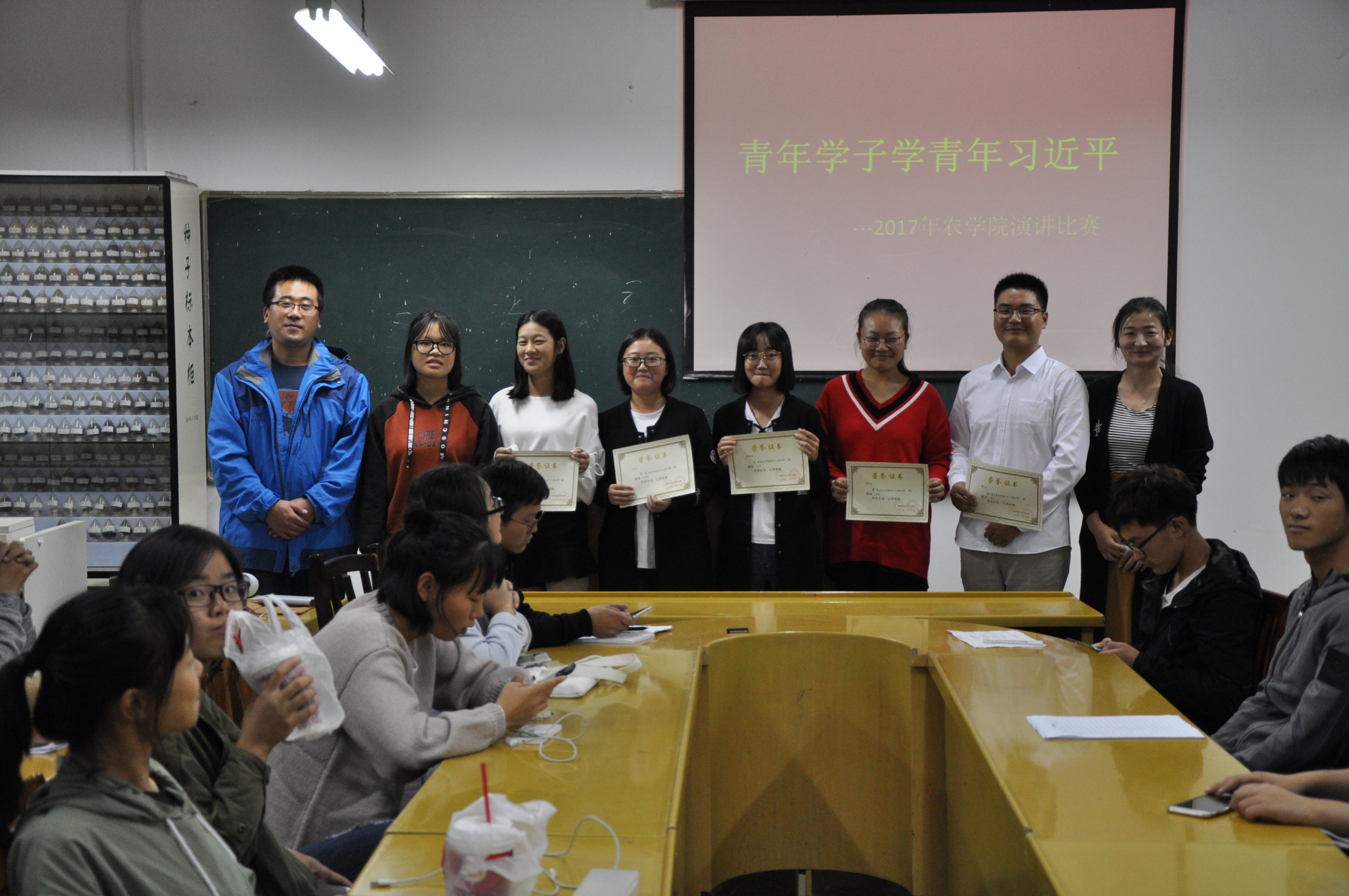 10月25日下午,在党的十九大顺利闭幕之际,农学院团委认真学习领会党的十九大精神,结合《习近平的七年知青岁月》,在十教518举办了“青年学子学青年习近平”的主题辩论赛,校团委吕莎莎老师、学院团委仇飞老师、郑青老师及部分学生干部担任比赛评委。习近平同志在党的十九大报告中强调,中国特色社会主义进入新时代,我国社会主要矛盾已经转化为人民日益增长的美好生活需要和不平衡不充分的发展之间的矛盾。在选择辩题期间,学院结合广大青年学子常在大学的各个阶段遇到自己需要的与自己想要的产生矛盾的实际,引导学生从“人更应该追求自己需要的/想要的”展开了辩论。