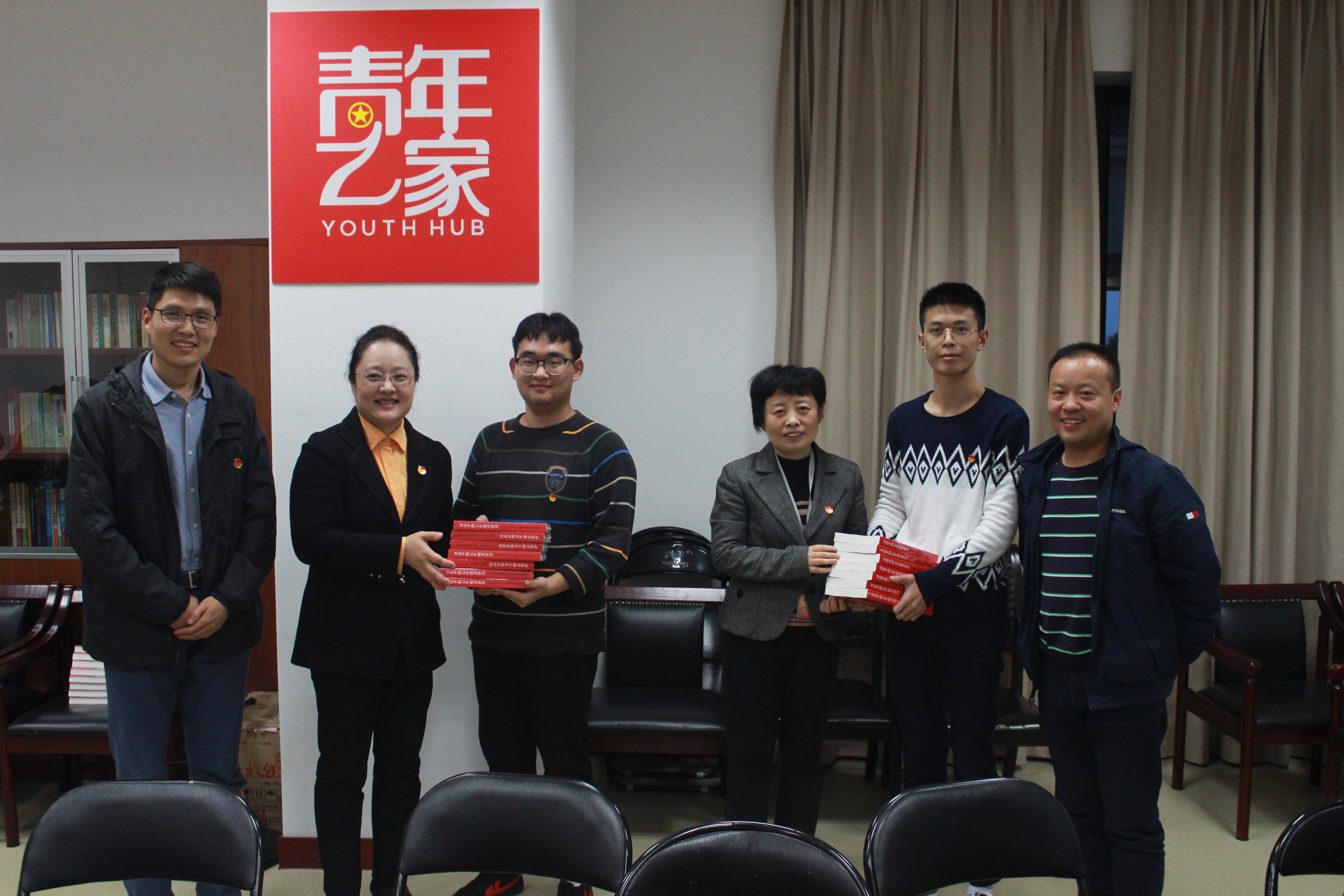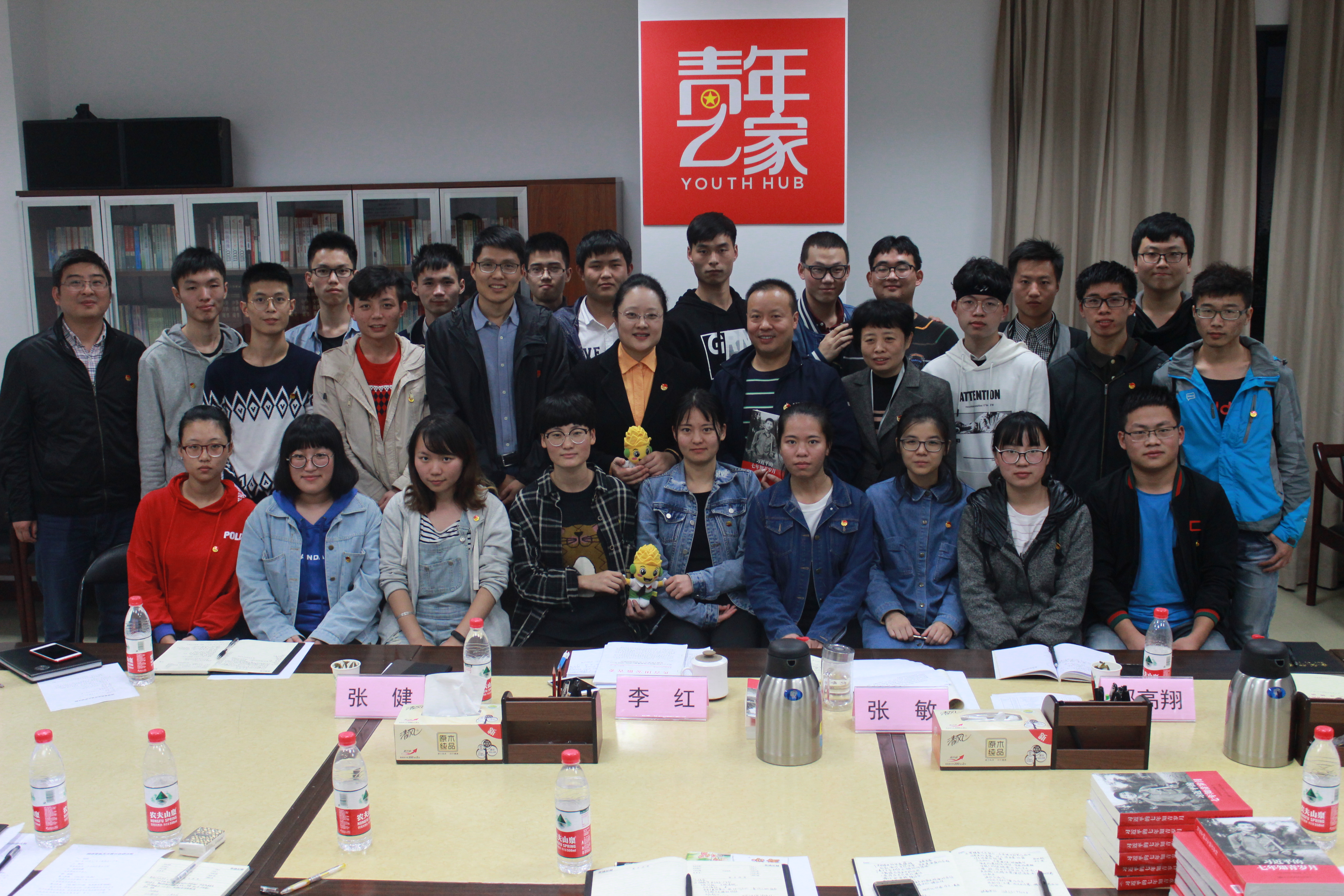座谈会后,李红书记、张敏副书记向试验班同学赠送了《习近平的七年知青岁月》一书,试验班同学向两位领导赠送我校共青团吉祥物农娃。