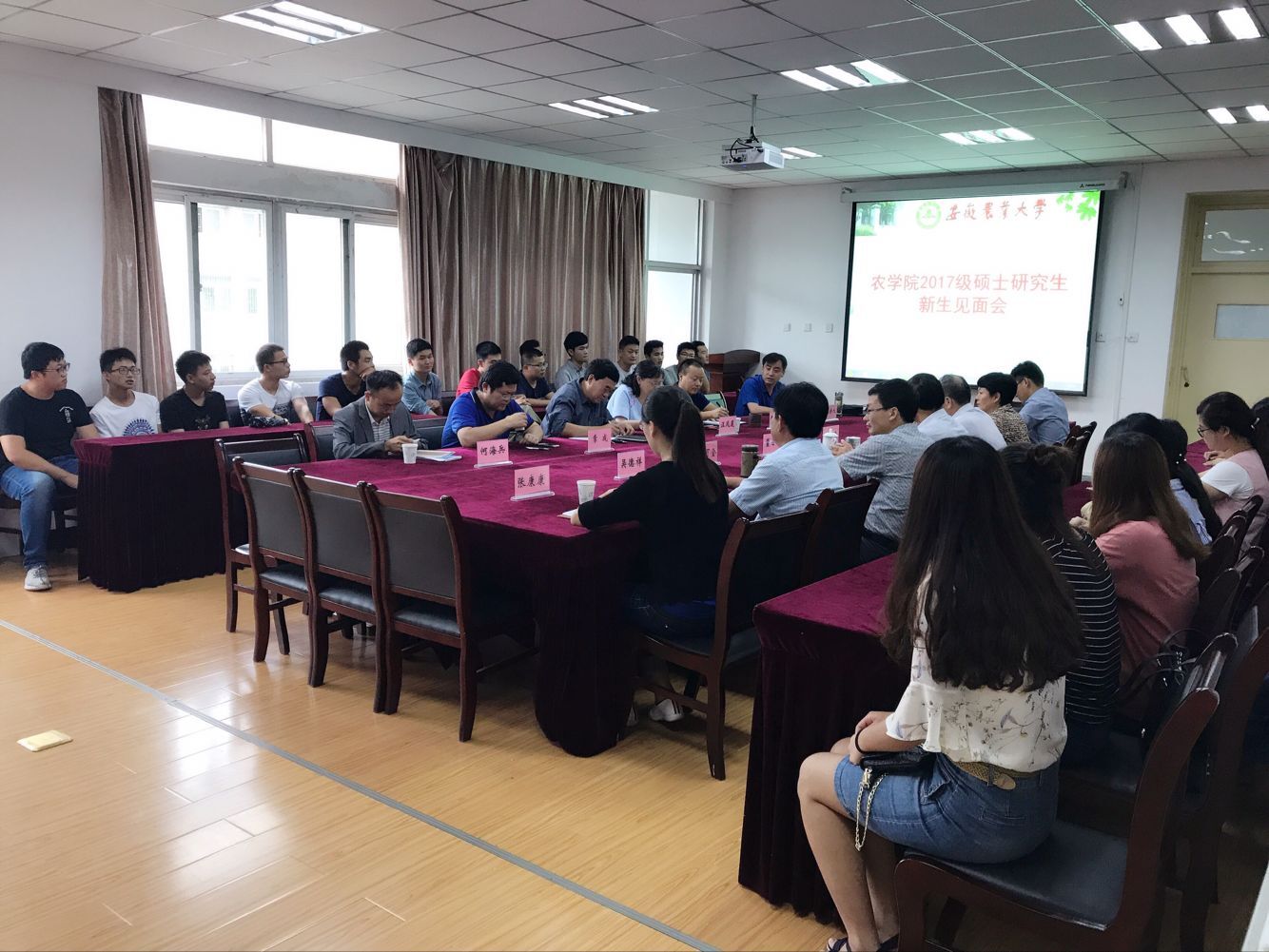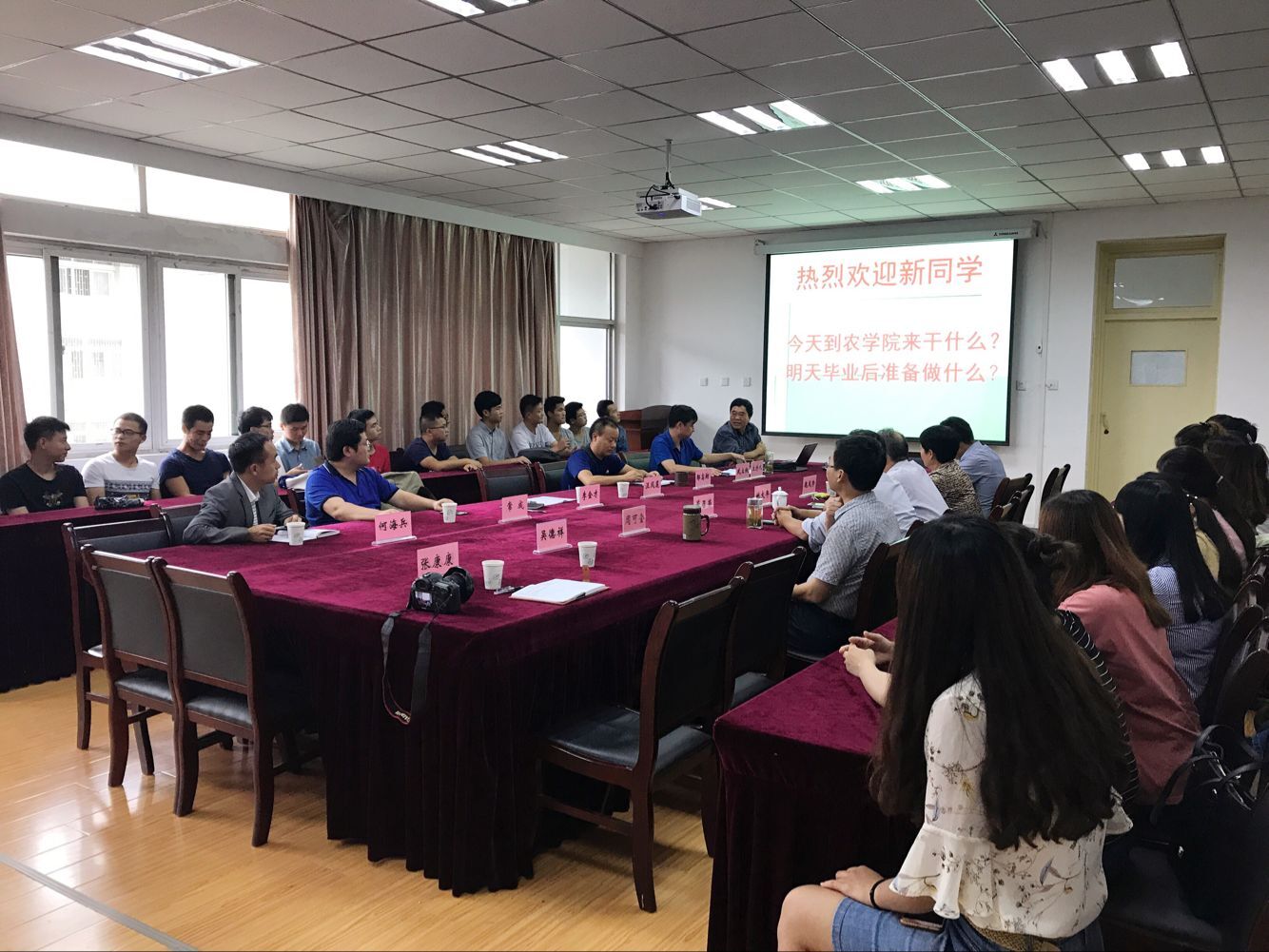 常成、武立权教授分别对作物遗传育种学和作物栽培学与耕作学的学科发展、师资、平台以及主要研究成果等方面作了介绍。导师代表姚大年教授分享了自我求学求知经验,并从不断自我提高、勇攀科学高峰、持续加强学习等方面与同学们做了分享和交流。院研究生秘书张康康老师从硕士研究生培养方案、专业课程设置、奖助评审规则以及研究生日常学习工作的注意事宜等方面作了讲解。新生班主任何海兵博士以研究生学习生活转变、思想准备以及班级班委建设等方面为主题,为新生召开了第一次班会。