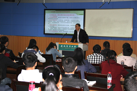 张承祥教授分别从中国特色农业现在化的主要困境、中国特色农业现代化的制度框架、中国特色农业现代化的路径选择3个方面分析了现阶段中国农业发展遇到的困境和存在的问题,并就此提出在新形势下发展中国特色农业的路径选择和基本道理。他结合我国农业发展的基本情况,对有志于从事农业创业的青年农场主提出了提高创业成功率的几点建议。会上,张教授还与同学们就发展休闲观光农业、有机农业、土地流转、电子商务在农业中的运用、大学生创业的优惠政策等问题进行了积极地交流,赢得了热烈的掌声。