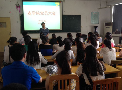 本网讯 5月23日下午,农学院在10教518召开全院学生党员大会,学院党委副书记姜家生出席会议,全体在校100多名党员参加会议,会议由学生党支部书记主持。