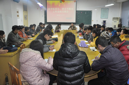 本网讯 1月7日下午,农学院在十教518会议室召开2014年度班级特色文化建设动员会,院党委副书记姜家生、各班级班长和团支书、学生分会主要学生干部参加,会议由团委老师主持。