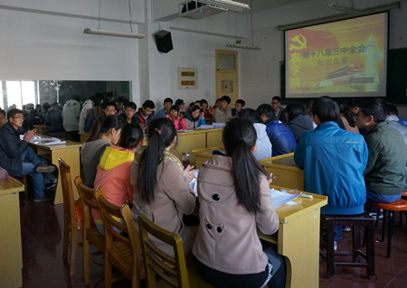 以此为契机,农学院号召各班级学子积极学习全会精神,在全院范围内开展全会精神学习,要求2013级新生班干部、团干部认真学习并撰写学习心得,在院团委腾讯微博开展“十八届三中全会我来学”为主题的线上交流活动;此外,12月1日下午,农学院在十教518会议室举办“十八届三中全会知识竞赛”,竞赛分为ppt展示、必答题和抢答题三个环节,使新生班干、团干在了解国家相关政策同时,树立学子梦想,增强社会责任感和使命感,勇于承担的学子担任。更能激发学农爱农服务三农的理想信念,做一名优秀的农科人才。